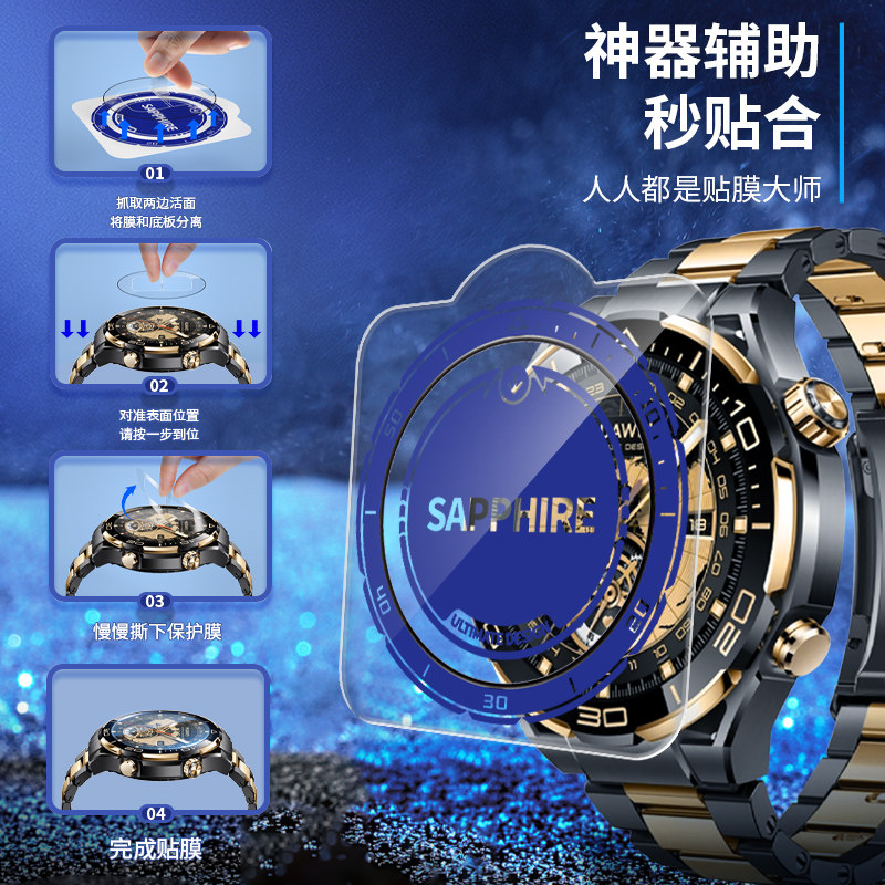 蓝猩适用华为WATCH Ultimate2非凡大师手表膜蓝宝石膜华为保护膜钢化玻璃表盘全屏覆盖智能一体贴膜神器