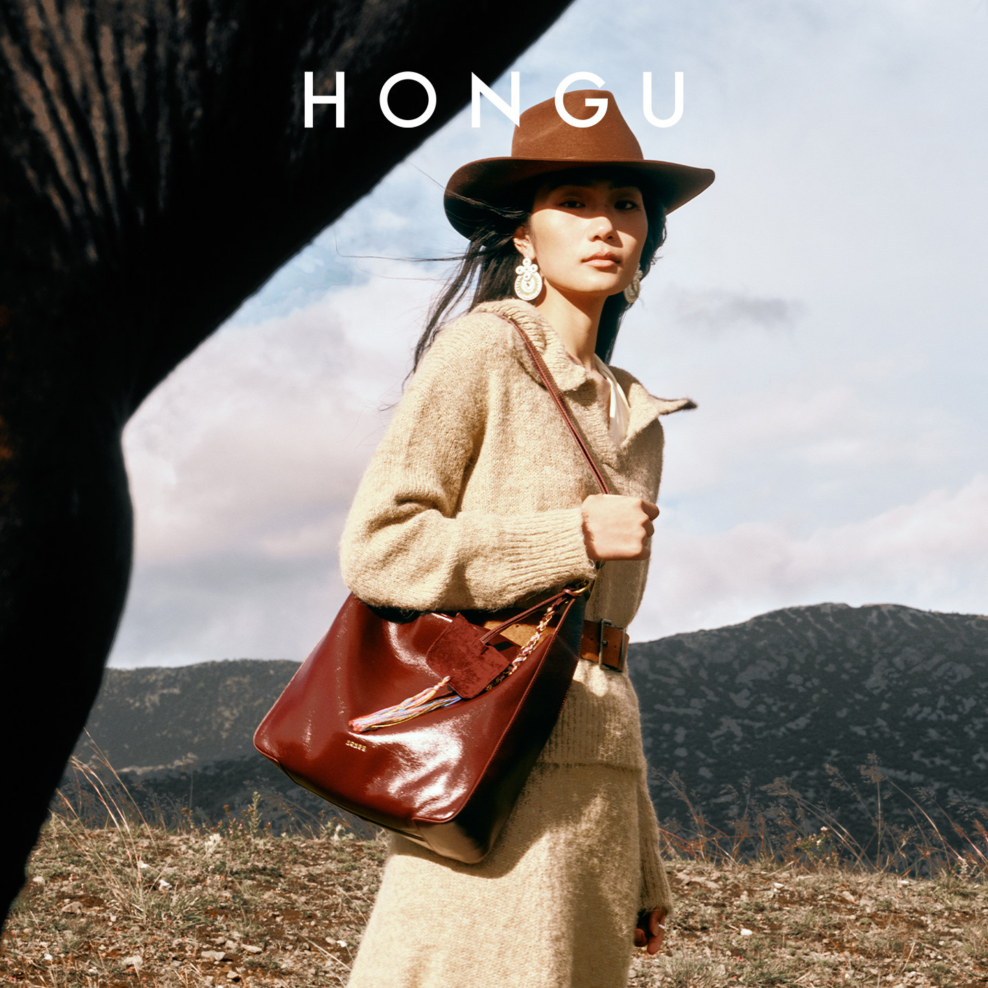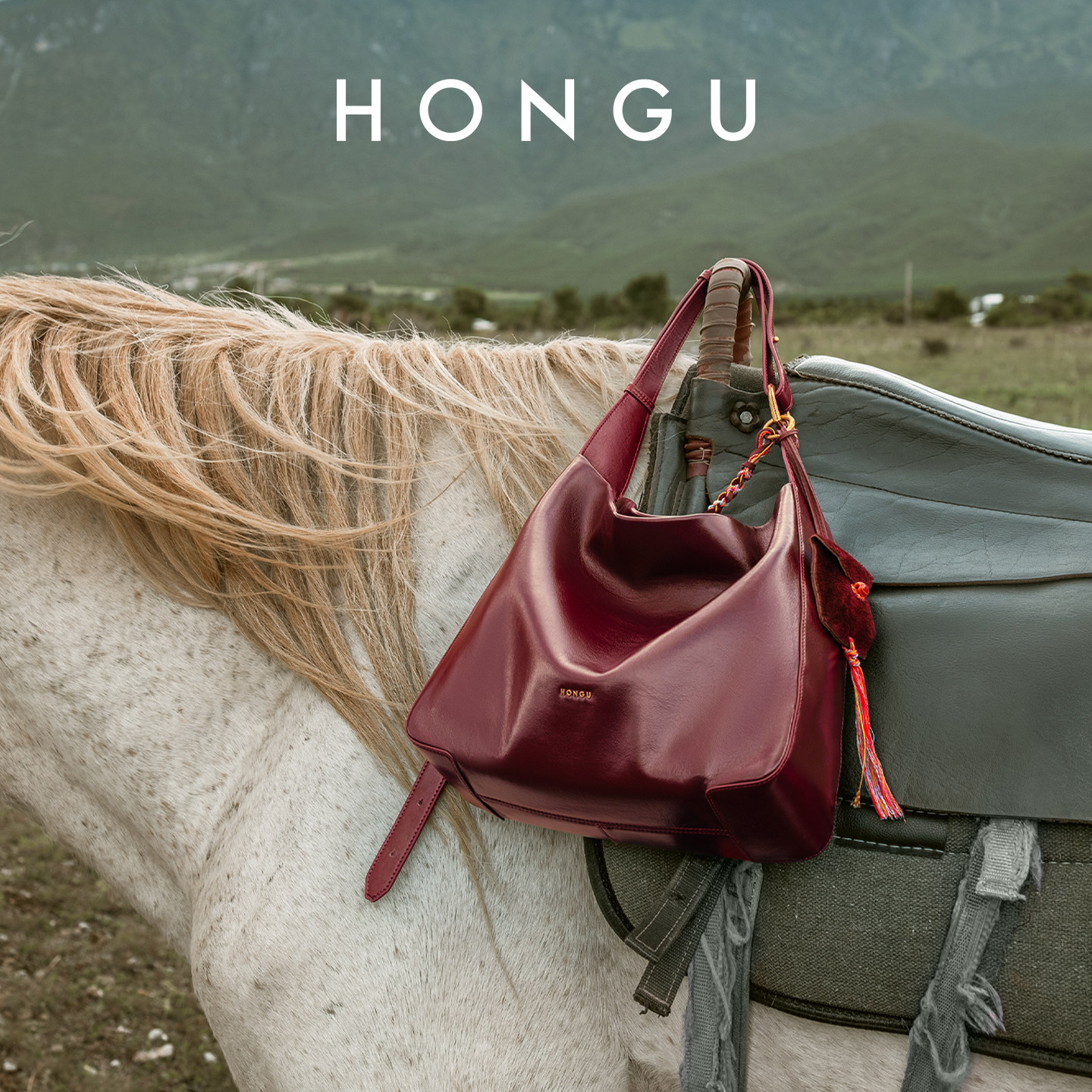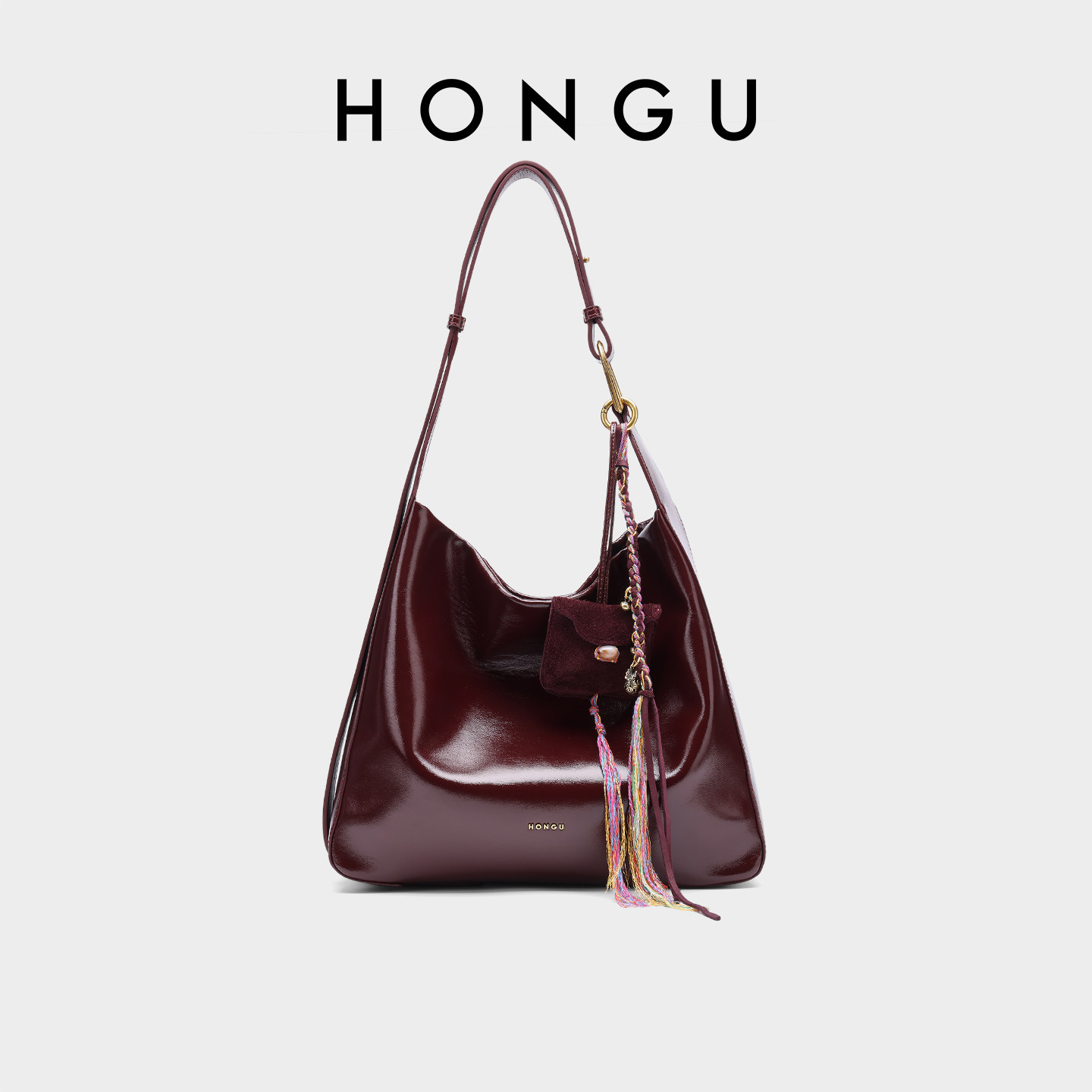 红谷包包2025新款真皮单肩腋下包亮面油蜡牛皮hobo包通勤软包女包