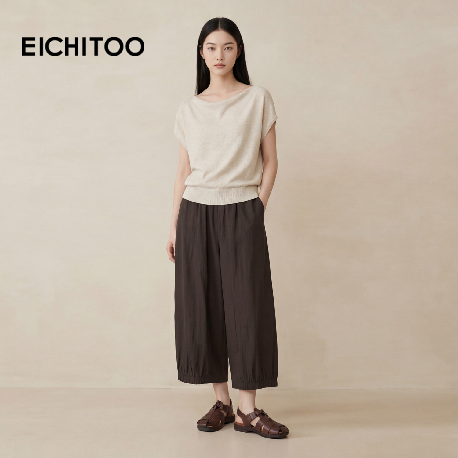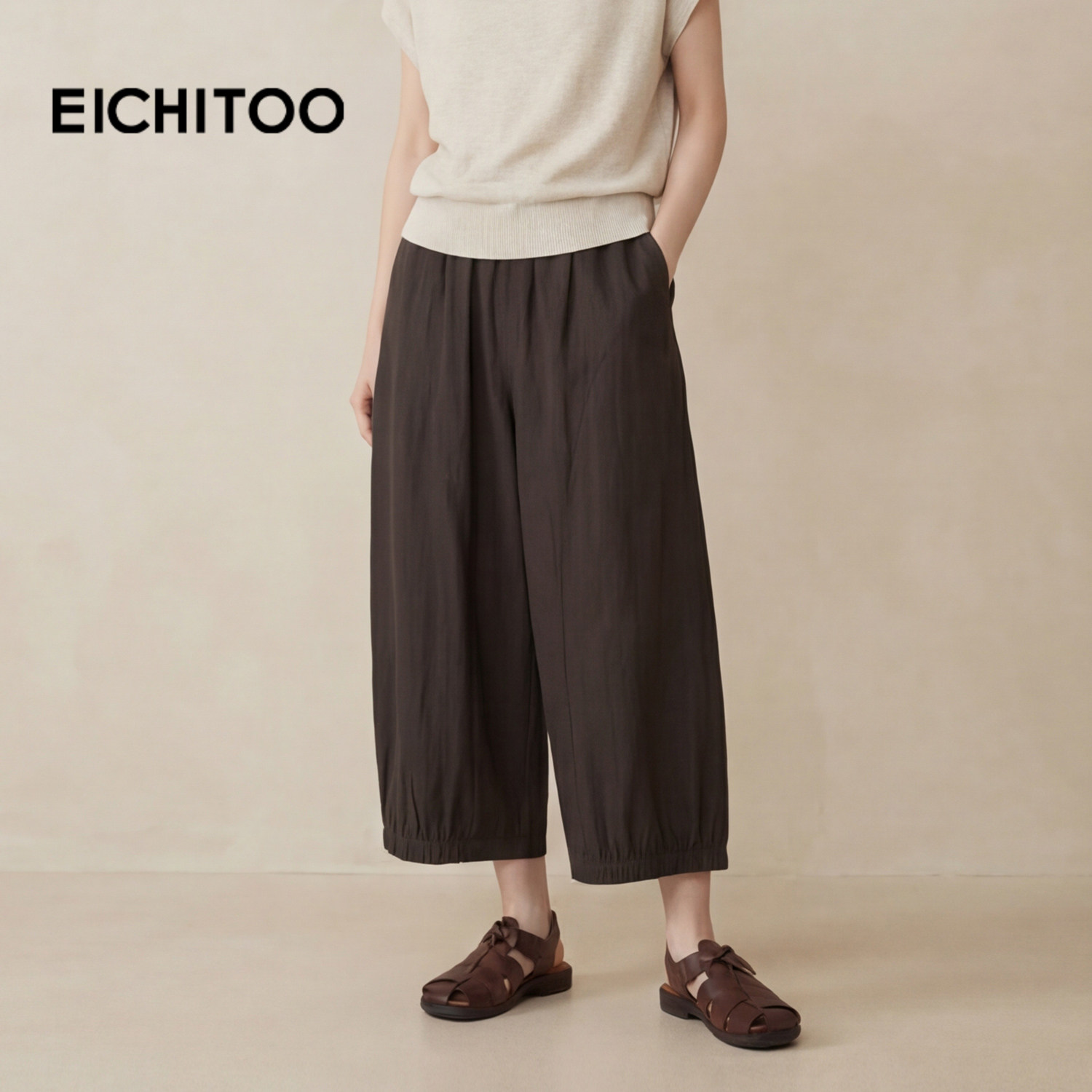 爱居兔宽松质感休闲裤2026年夏季新款女松紧不勒舒适挺括哈伦裤