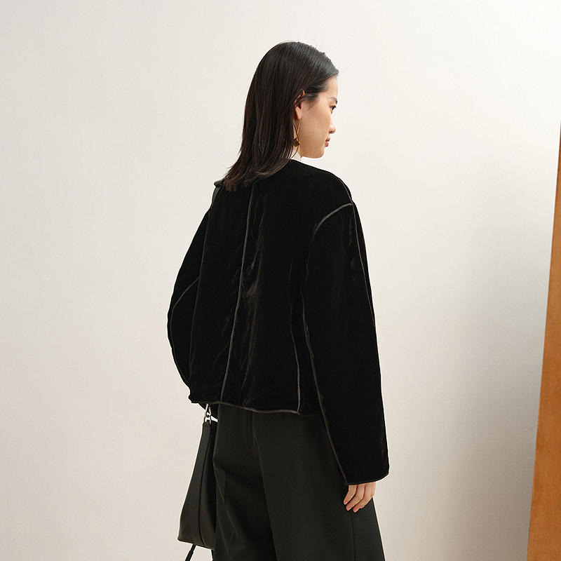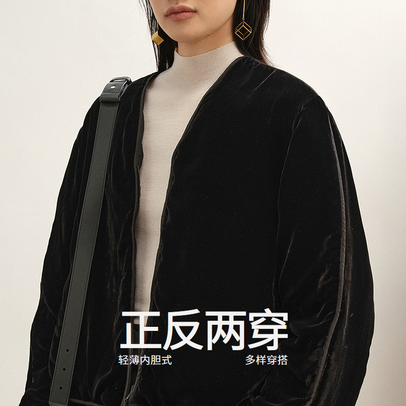 【商场同款】LESS2025冬新款丝绒老钱风轻薄短款羽绒服2P0C16610