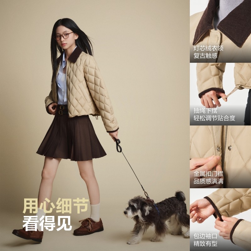 波司登2025新款秋羽绒服女短款时尚翻领轻薄巴恩风外套B250135332