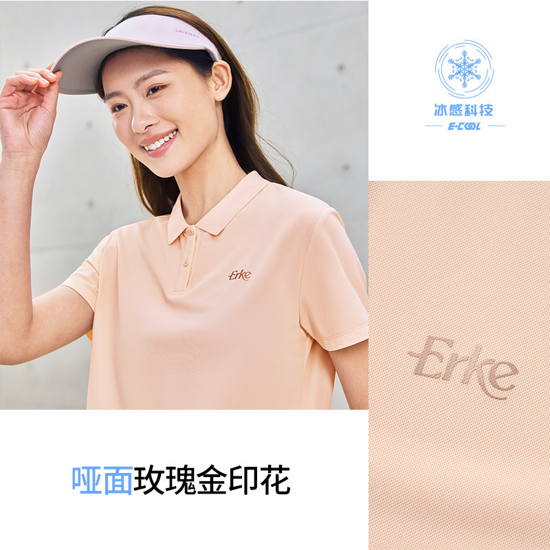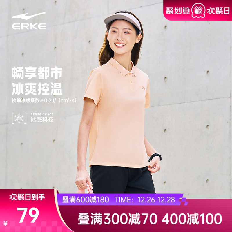 鸿星尔克polo衫2025夏季新款女士冰感冰丝运动服短袖t恤女款上衣