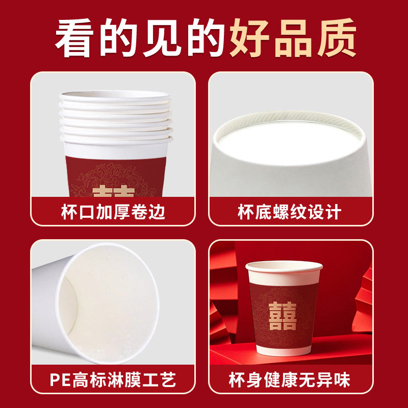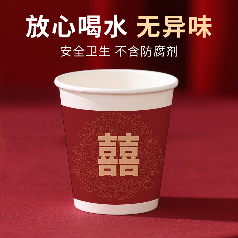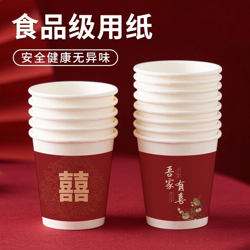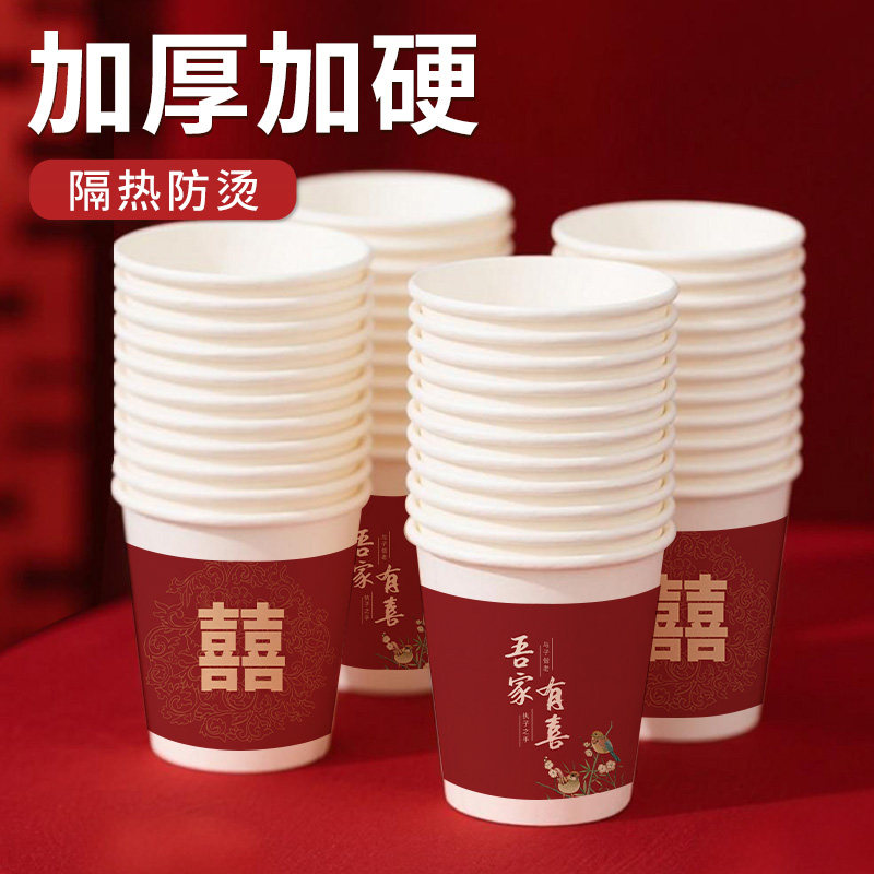 结婚纸杯家用一次性杯子敬茶杯加厚中式婚庆用品大全婚礼喜字喜杯
