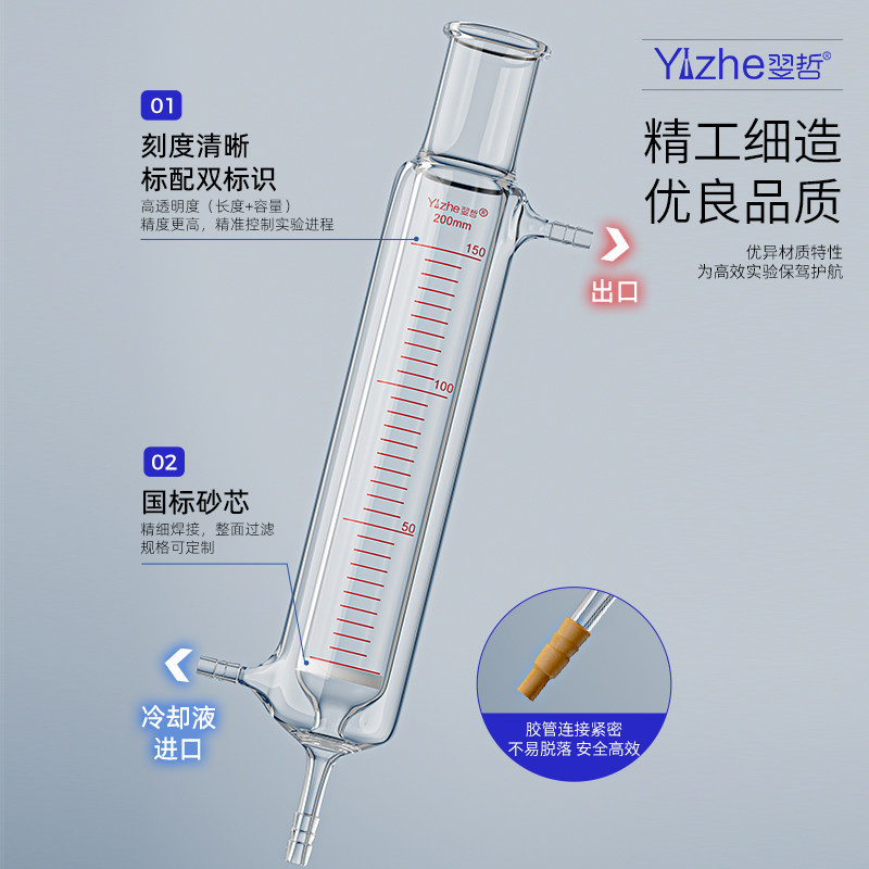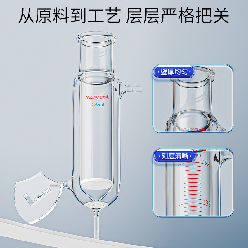 多肽固相玻璃砂芯反应管双层夹套层析柱反应柱合成反应器釜恒温多肽柱筒形砂芯漏斗砂芯过滤器