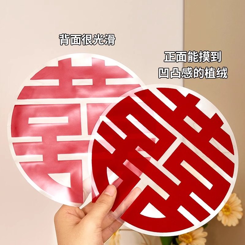 原创卡通喜字静电贴纸结婚专用男女方婚房布置窗户门新房装饰备婚