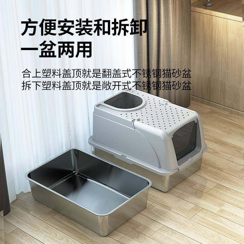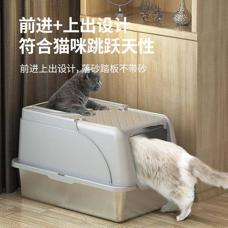 不锈钢猫砂盆全封闭猫砂盆超大号防外溅翻盖式猫沙盆防臭猫厕所