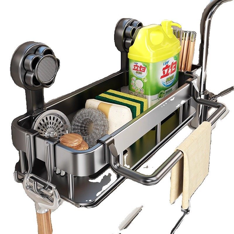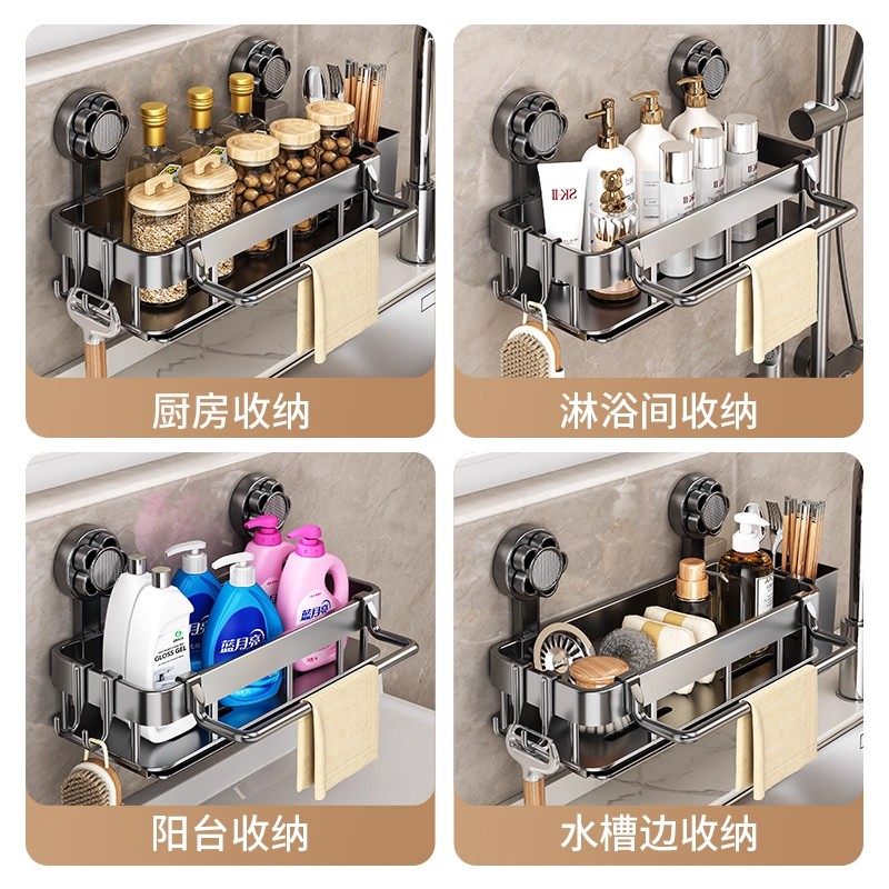 吸盘厨房置物架抹布收纳沥水架免打孔调料架子水龙头水槽神器浴室