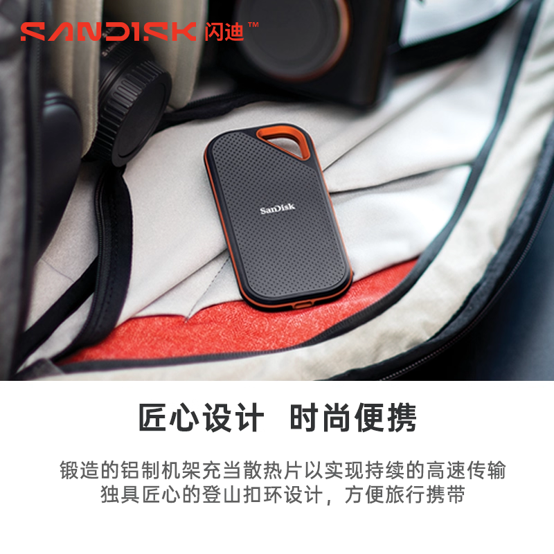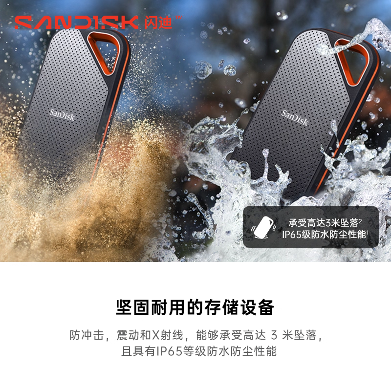 闪迪E61固态移动硬盘2t三防便携ssd外接1tb大容量手机电脑两用