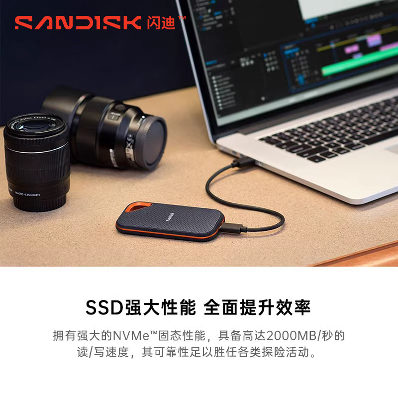 闪迪E81固态移动2t硬盘1T/4t加密Typec双接口USB3.2高速读取2000m