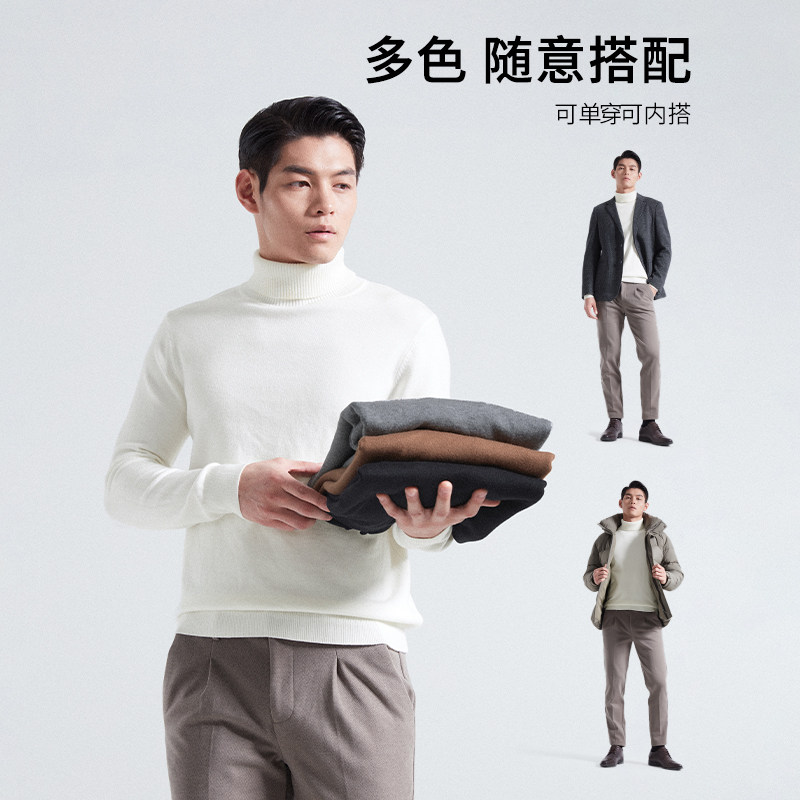 【绵羊毛】杉杉官方2025秋季新款针织衫男士高领毛衣内搭打底衫