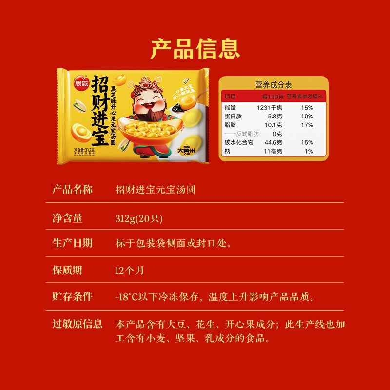 思念招财进宝元宝黑芝麻汤圆花生大黄米元宵柿柿如意汤圆速冻早餐