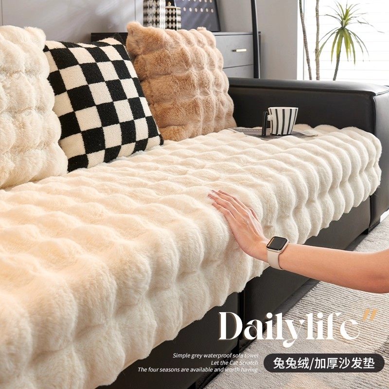 高级感兔绒沙发垫冬季新款2025轻奢毛绒皮沙发套罩专用盖布巾毯子