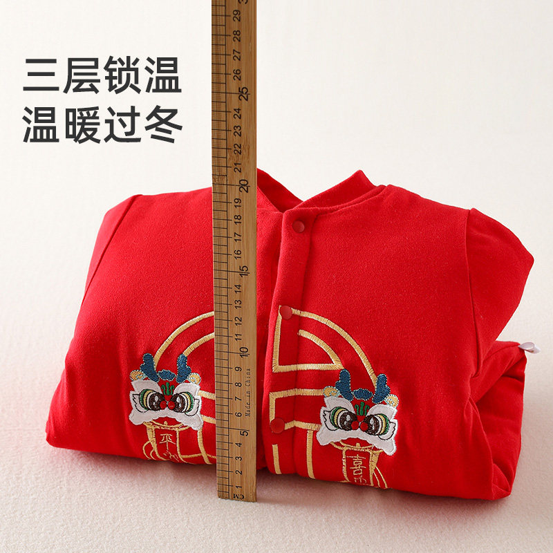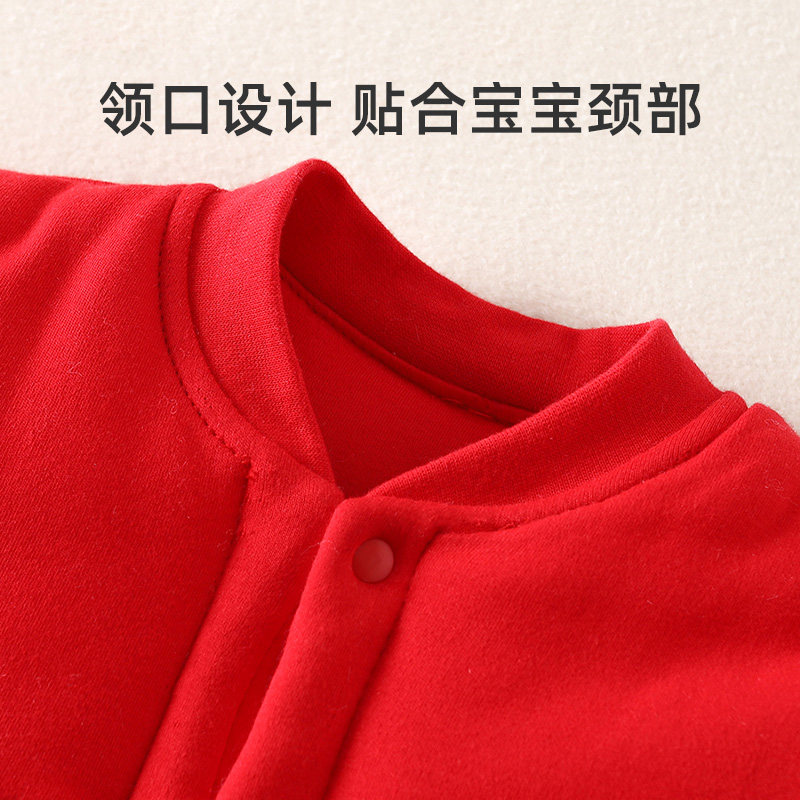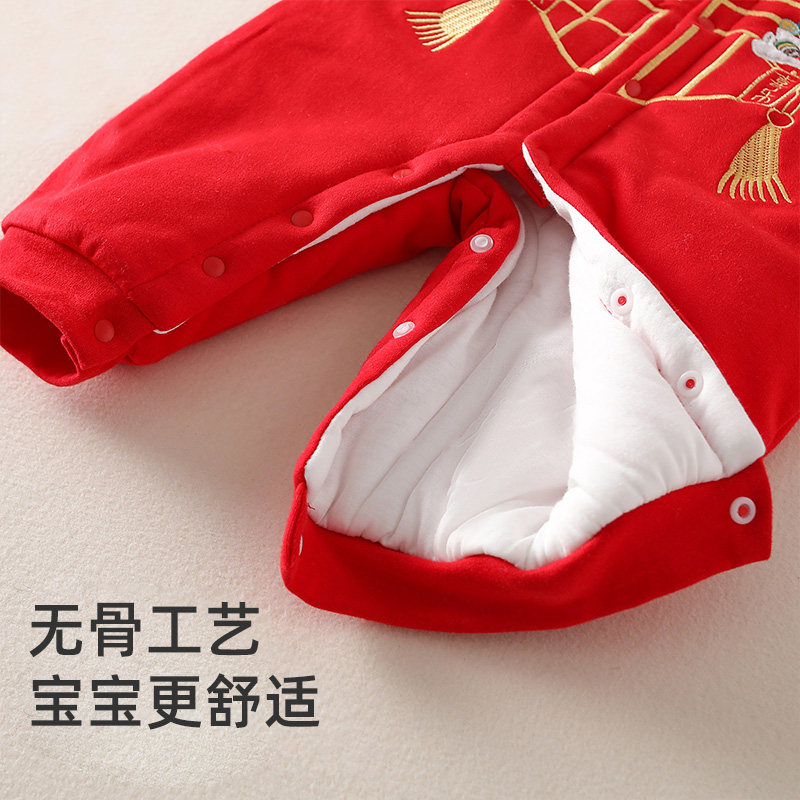 婧麒婴儿拜年服连体衣满月新年装冬季男女宝宝喜庆过年收红包衣服