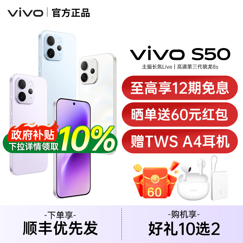【广东/山东政府补贴10%】vivo S50新品学生拍照手机vivo手机官方旗舰店官网正品vivo手机vivos50 s50promini