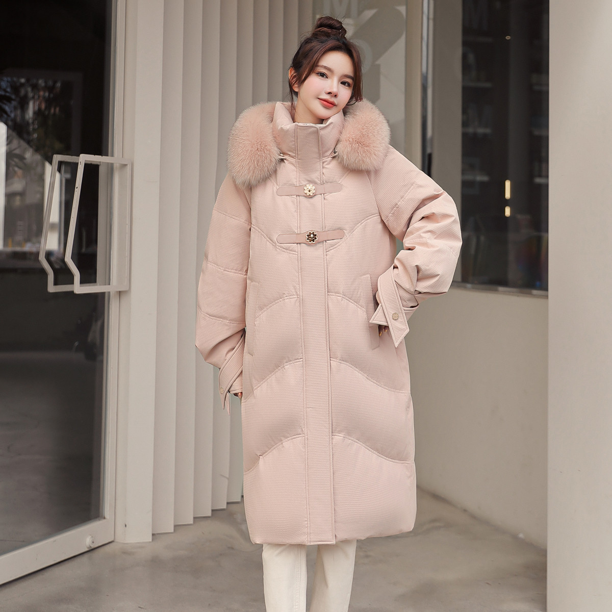 雪中飞2025冬新款女士长款羽绒服连帽狐狸毛领加厚肌理感蝴蝶袖