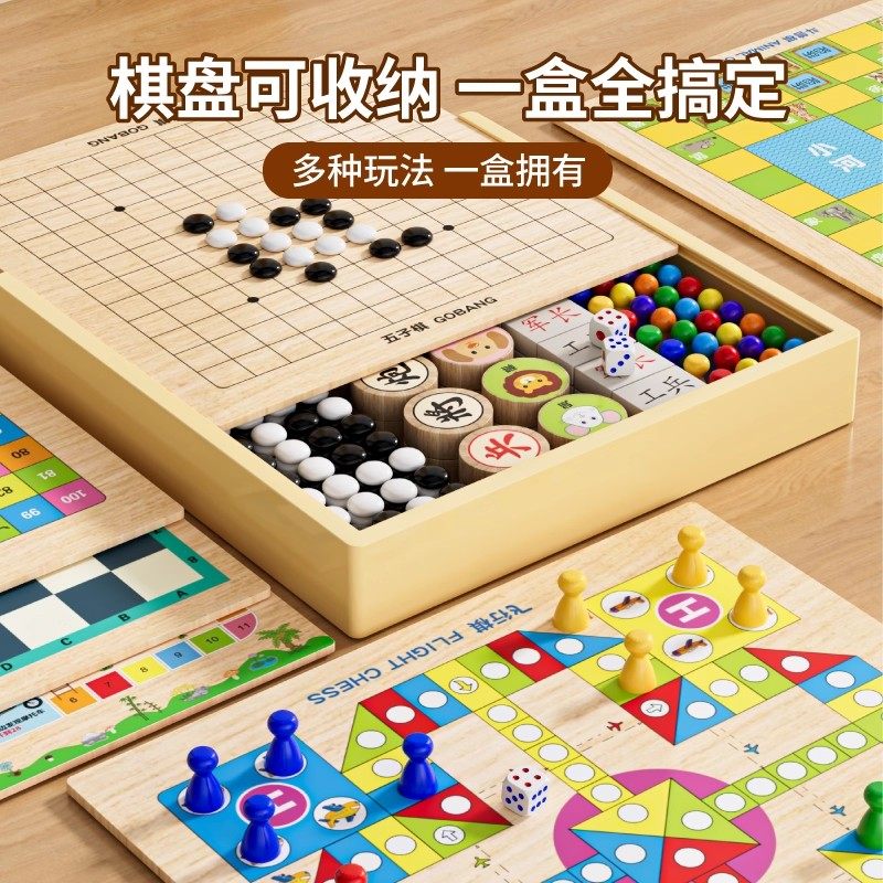 飞行棋五子棋儿童版益智玩具多功能棋盘小学生棋类套装象棋游戏