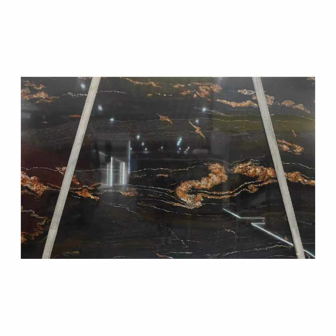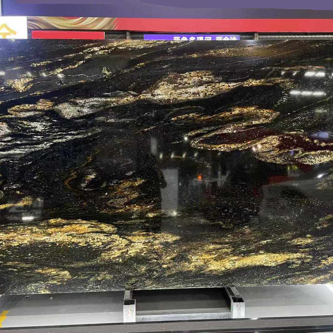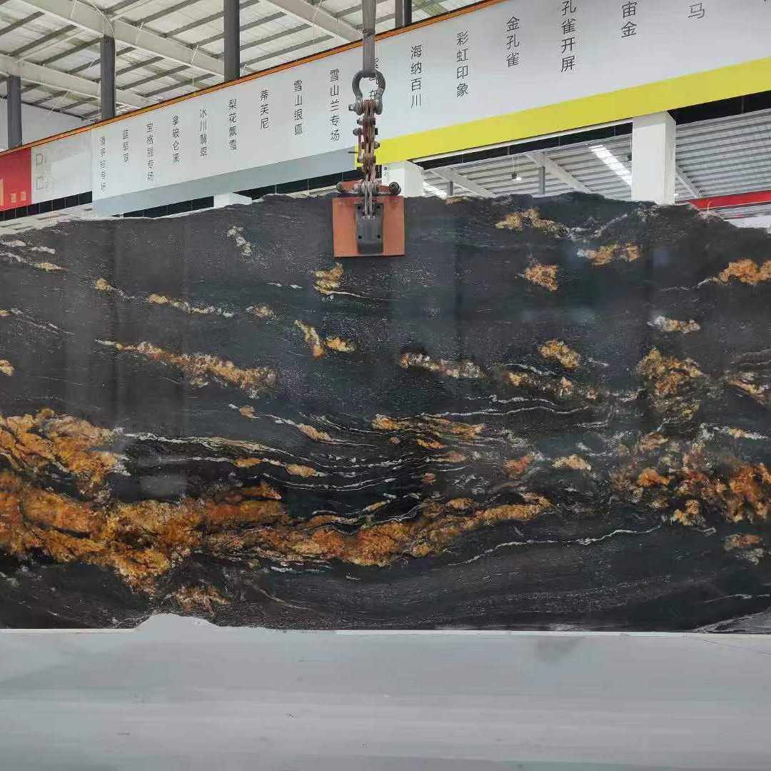 黑金刚天然奢石餐桌岛台台面 大理石现代轻奢电视背景墙