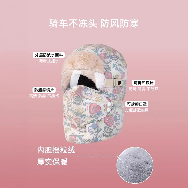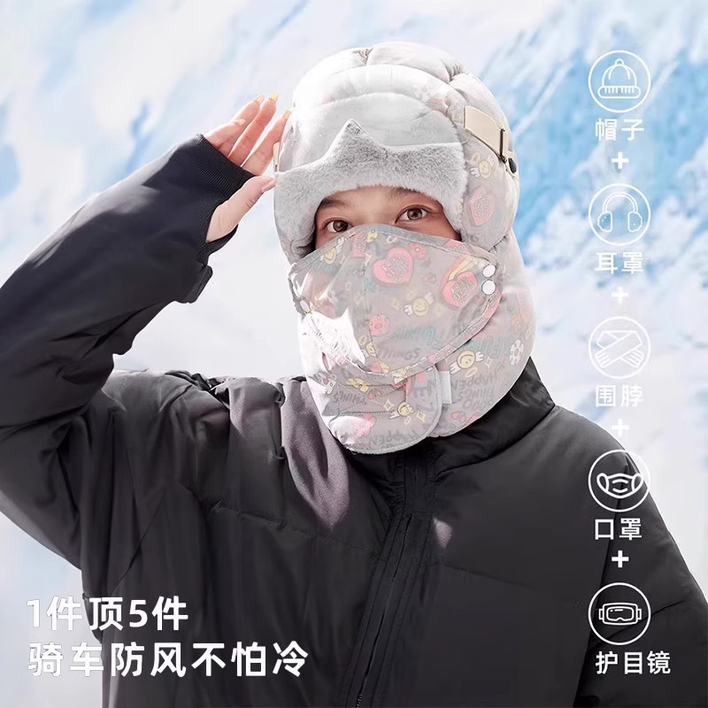 帽子女冬防风骑行防寒装备加绒厚头套保暖雷锋帽男东北棉帽子骑车