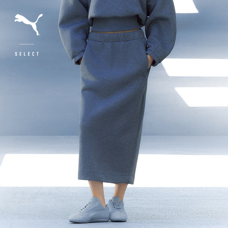 PUMA彪马后开衩纯色口袋半身长裙女新款秋季格雷系针织长裙633473
