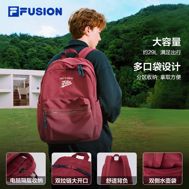 FILA FUSION斐乐官方包包2025新款情侣休闲双肩包女电脑包书包男