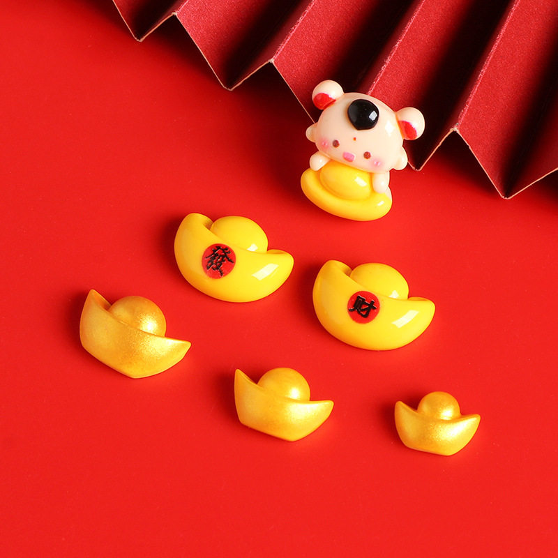 立体树脂新年发财大小金元宝diy饰品小配件桌面车载装饰小摆件
