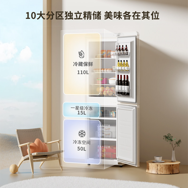 美Meidi的128L无霜小冰箱双门冷藏冷冻家用小型租房一级节能省电
