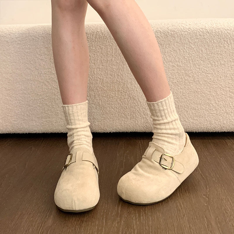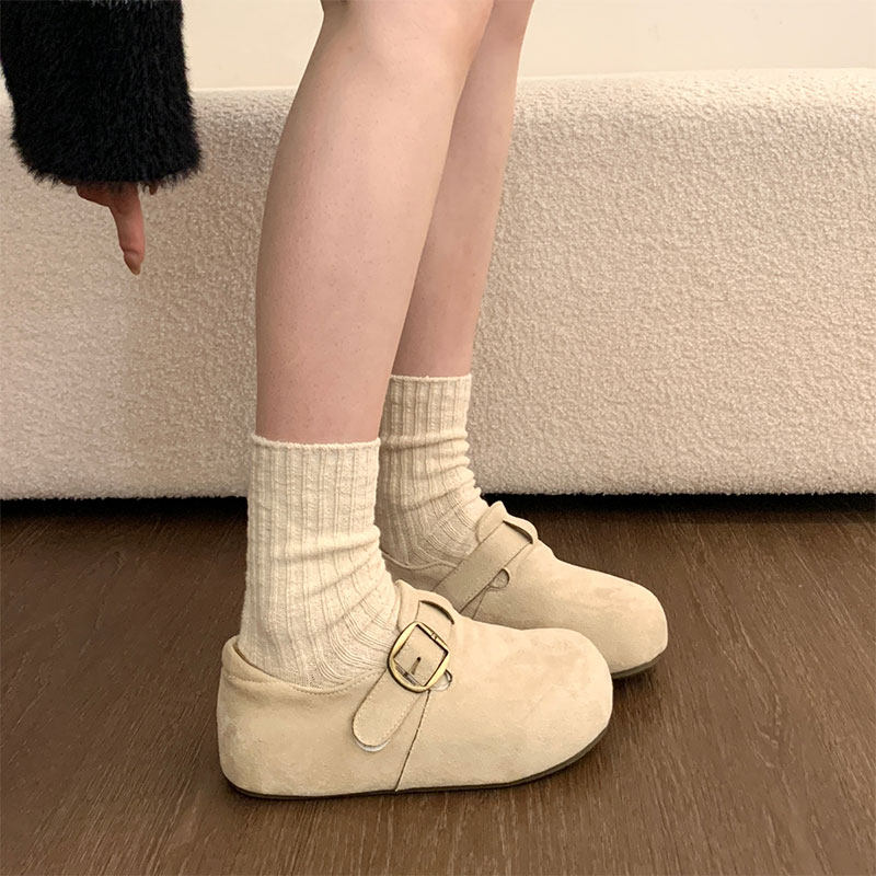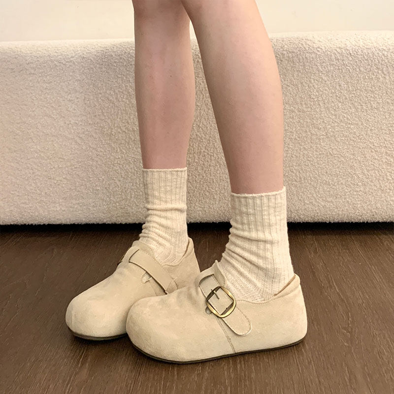 厚底内增高加绒勃肯鞋女2025秋冬新款一脚蹬丑萌大头全包博肯棉鞋