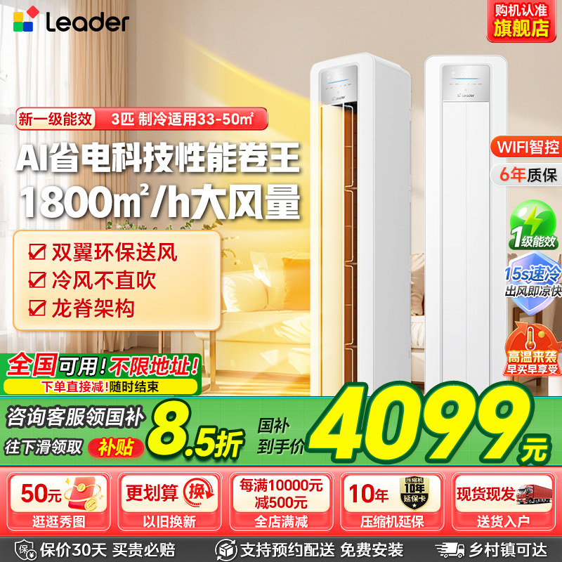 海尔统帅AI超省电空调3匹2匹一级变频冷暖家用客厅空调立式柜机