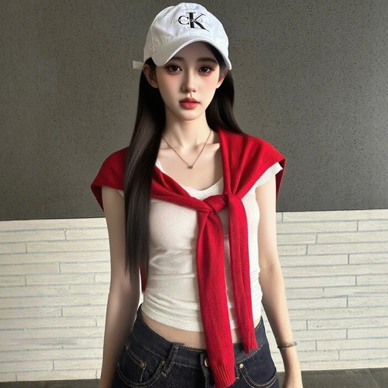 2025新款红色外搭披肩高端空调房夏季薄款防晒针织搭肩女条纹黑色