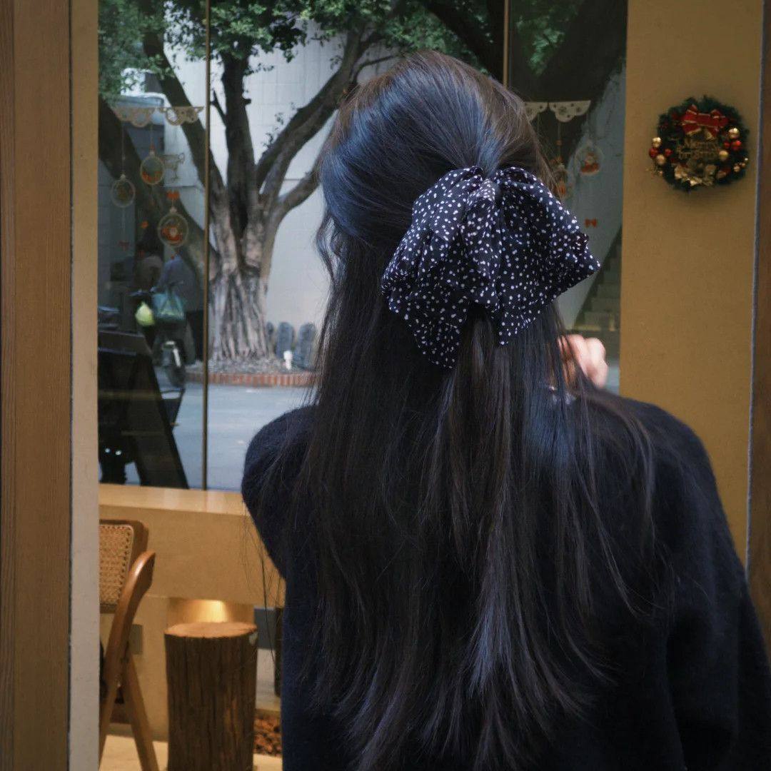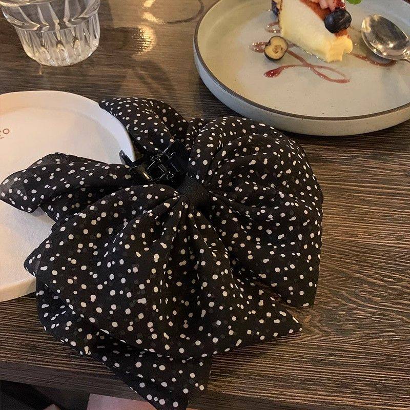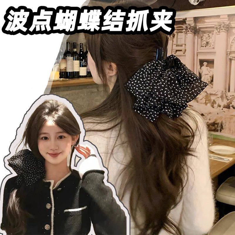 复古多层雪纺波点蝴蝶结抓夹法式小号半扎发马尾夹气质发饰女抓夹