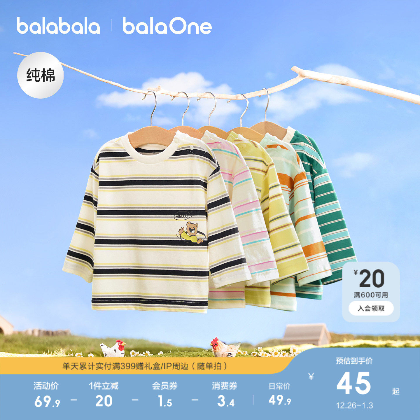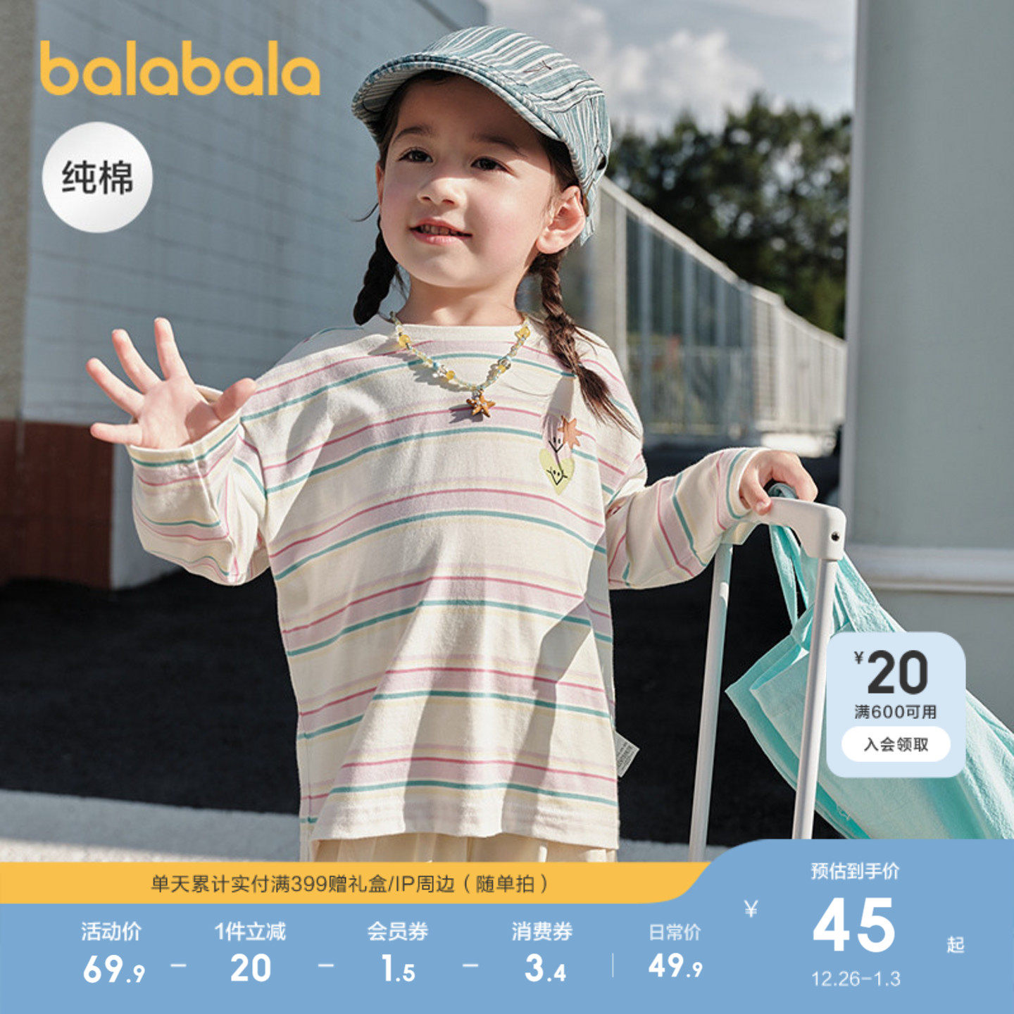 巴拉巴拉童装宝宝长袖t恤儿童2025年新款春秋装男童女童纯棉上衣