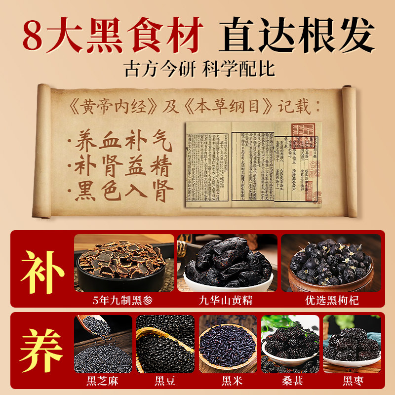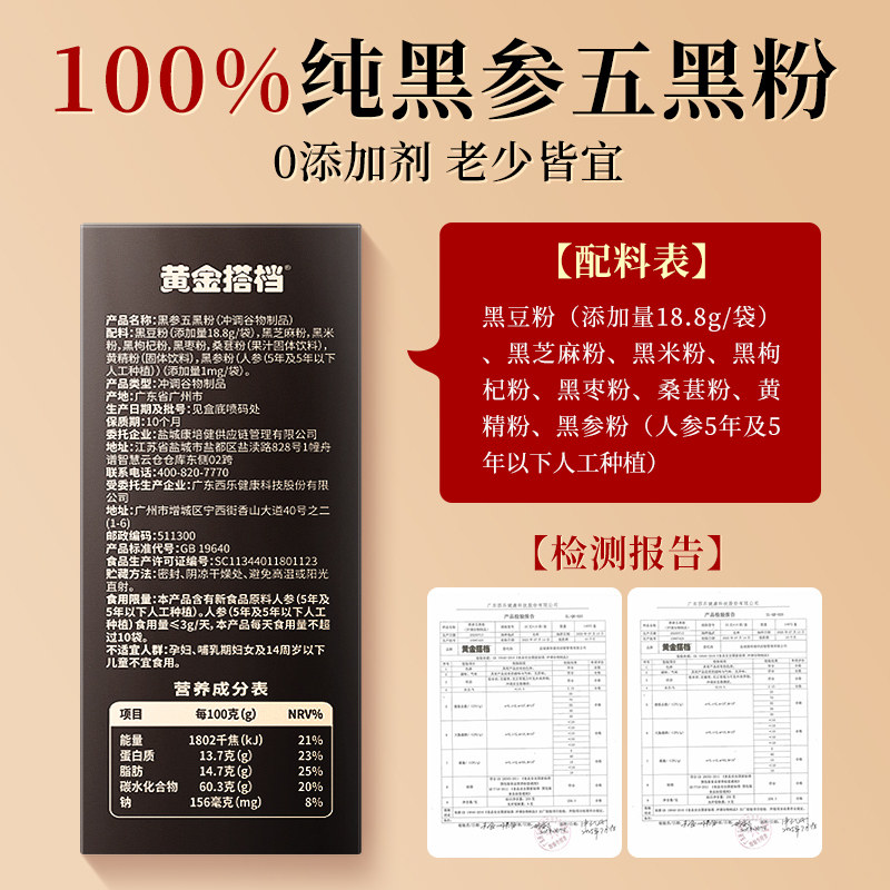 黄金搭档黑参五黑粉黑芝麻糊桑葚黑豆枸杞养发生早代餐官方旗舰店
