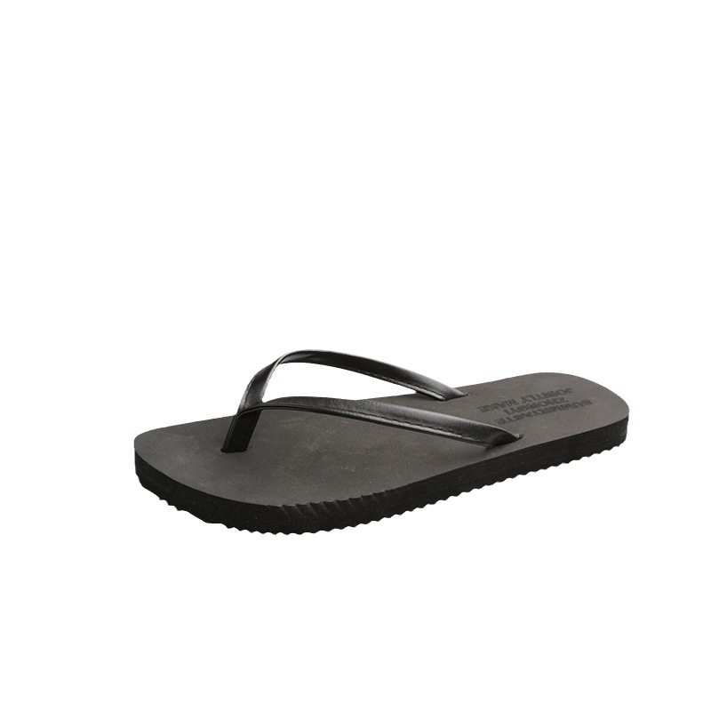 时尚沙滩度假网红平底人字拖鞋男女士夹脚凉拖鞋黑色pu皮情侣外穿