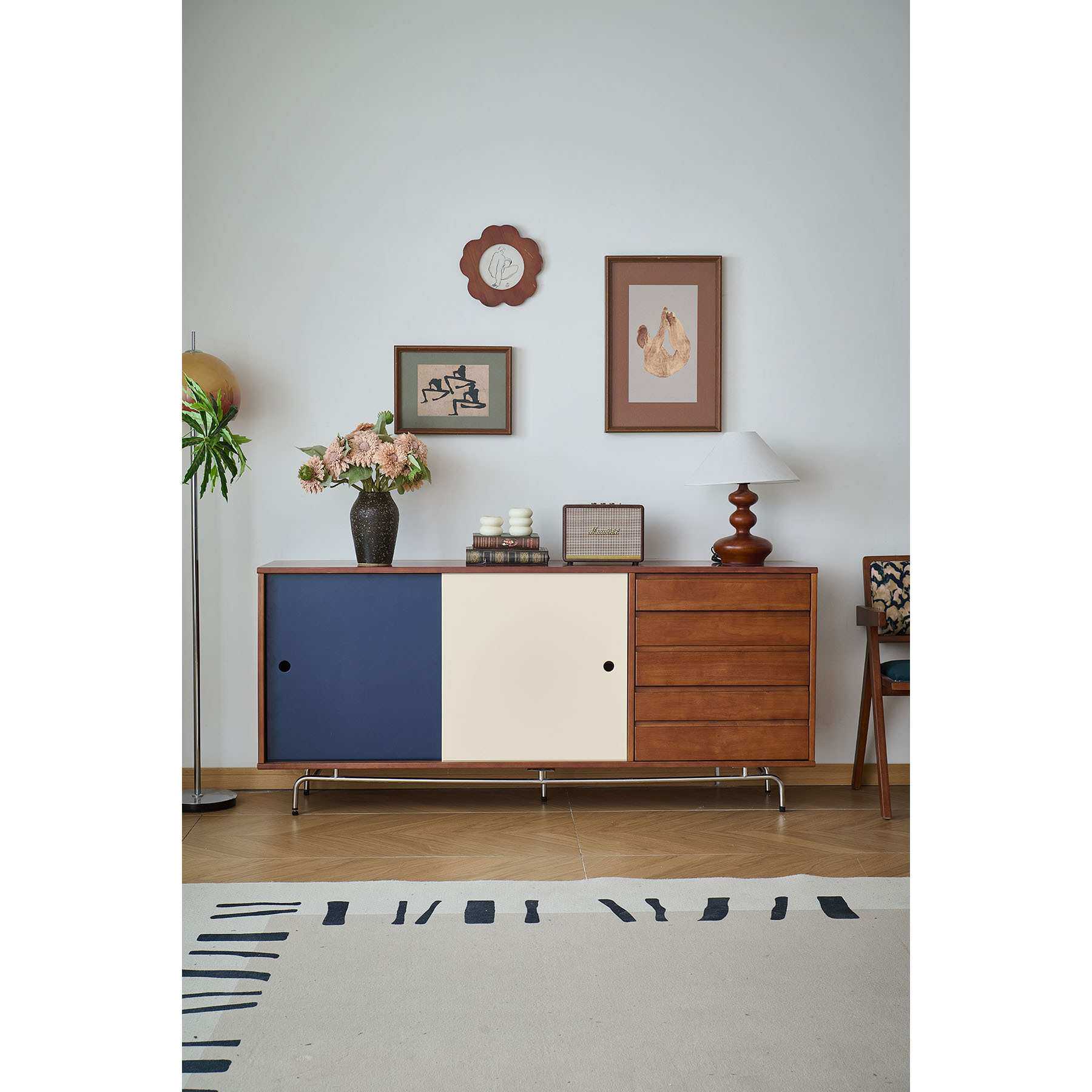 实木餐边柜复古收纳储物柜小户型客厅家用厨房靠墙北欧斗柜置物柜