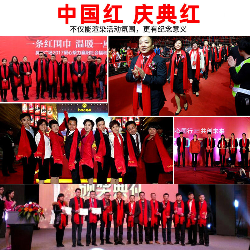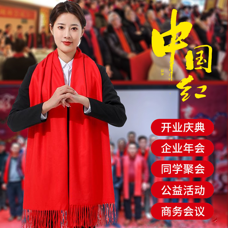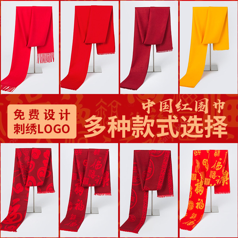 中国红围巾活动同学聚会年会开业庆典围脖logo刺绣纯色大红冬季