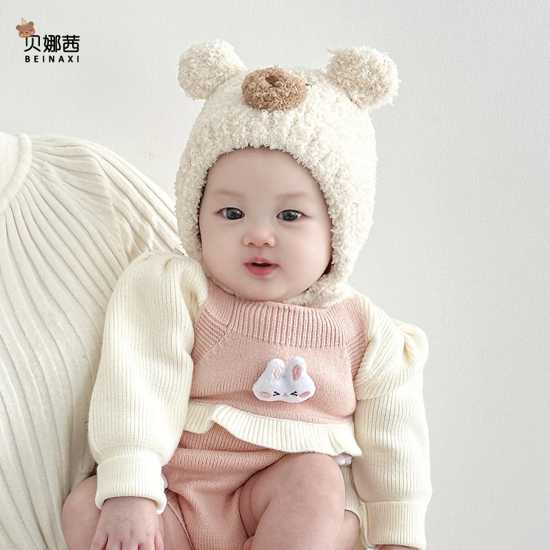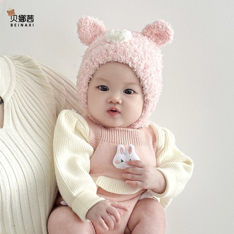 婴儿帽子秋冬季宝宝男可爱婴幼儿护耳小月龄冬天保暖毛线帽洋气