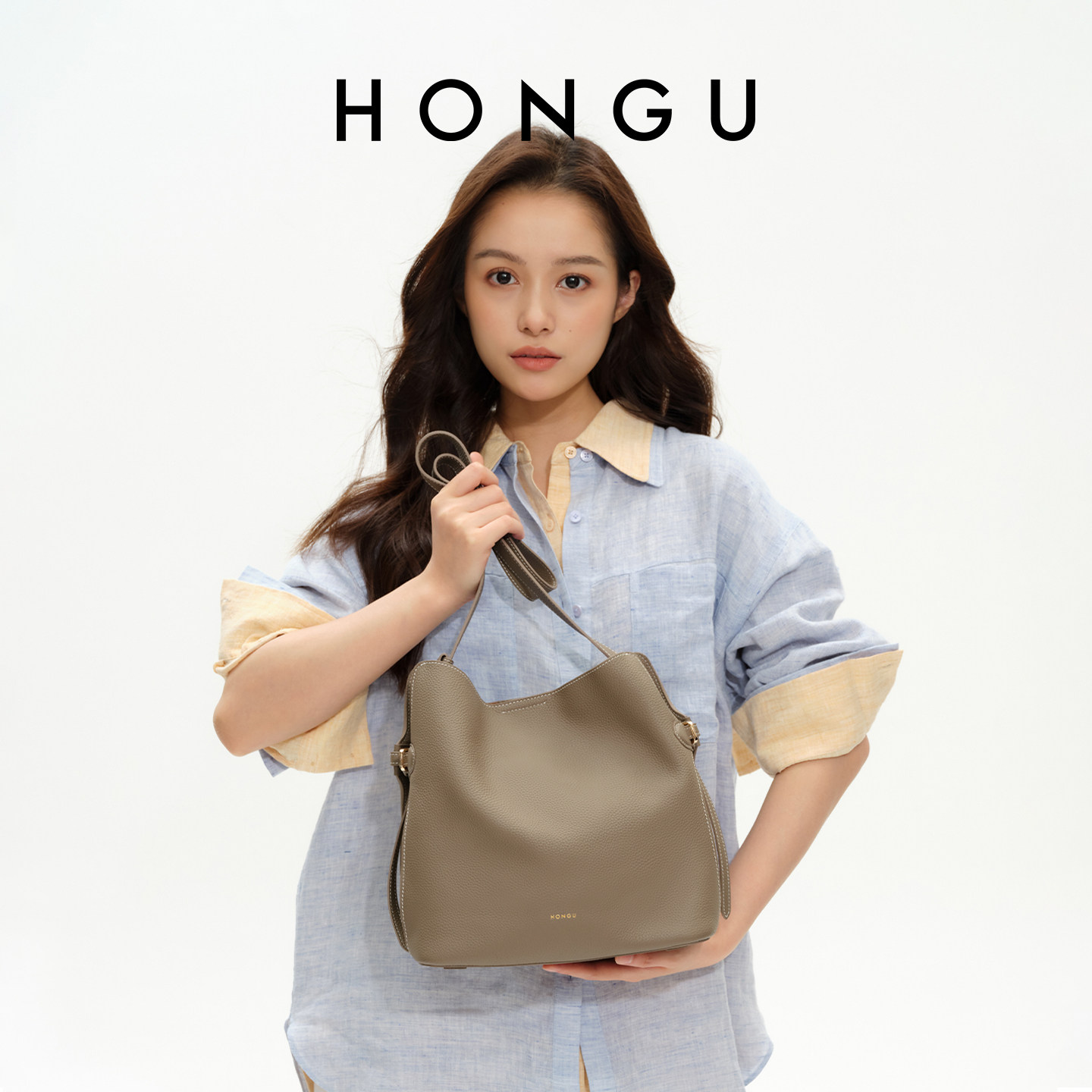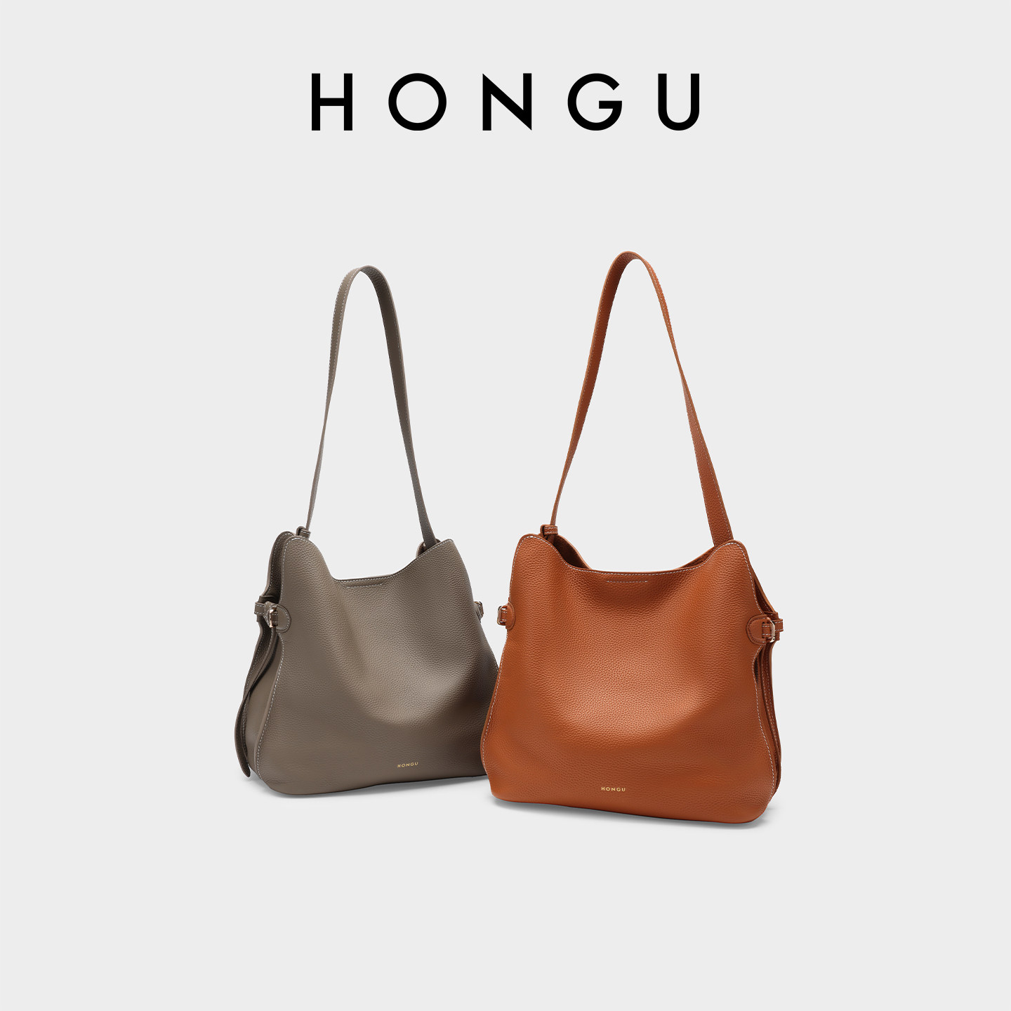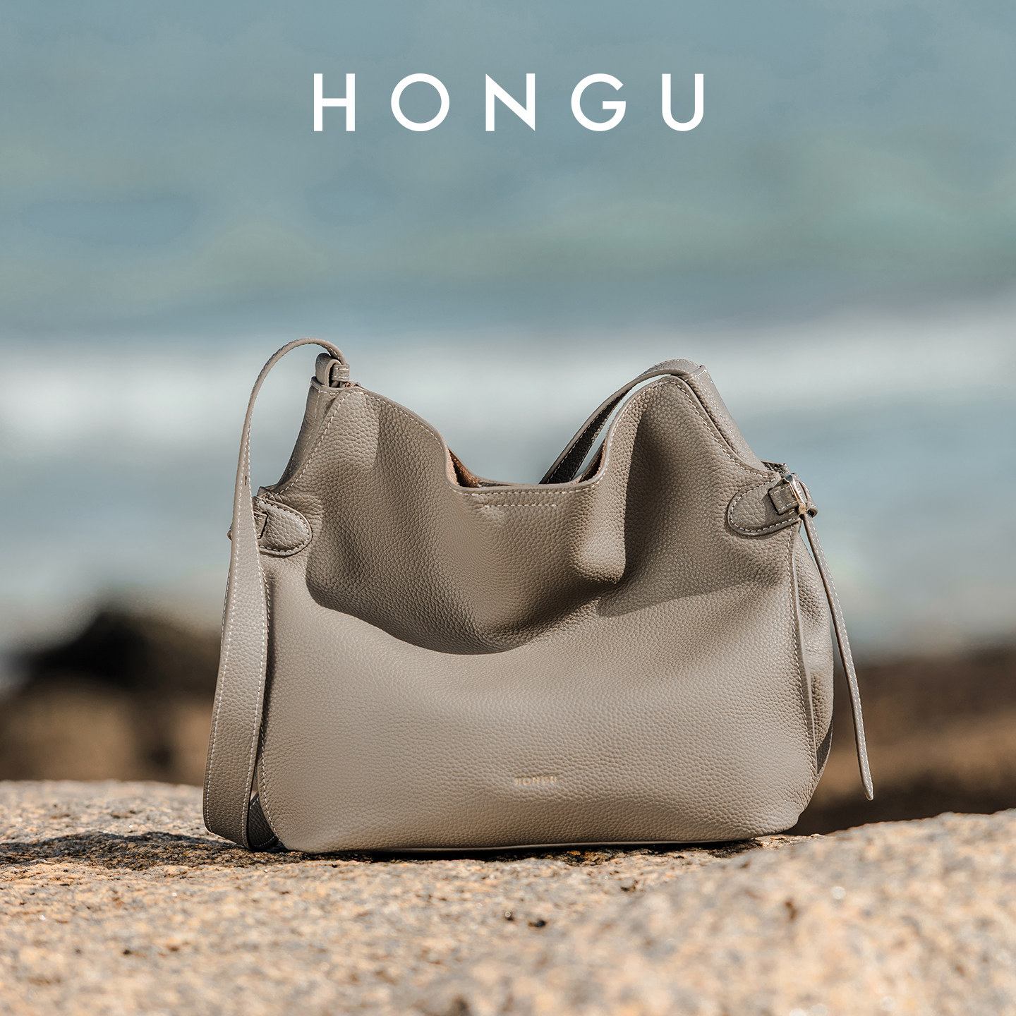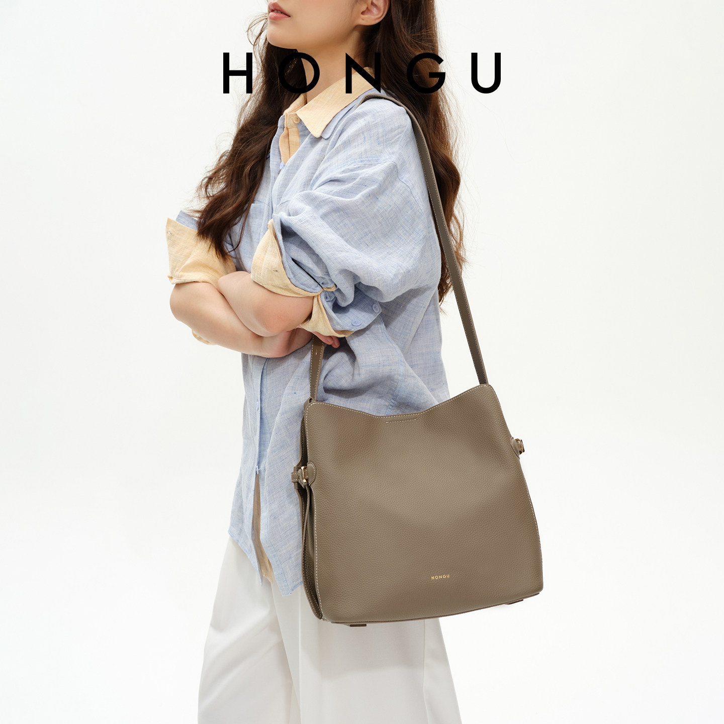 红谷包包女2025新款质感真皮单肩腋下包休闲慵懒牛皮水桶包女士包