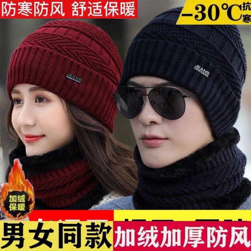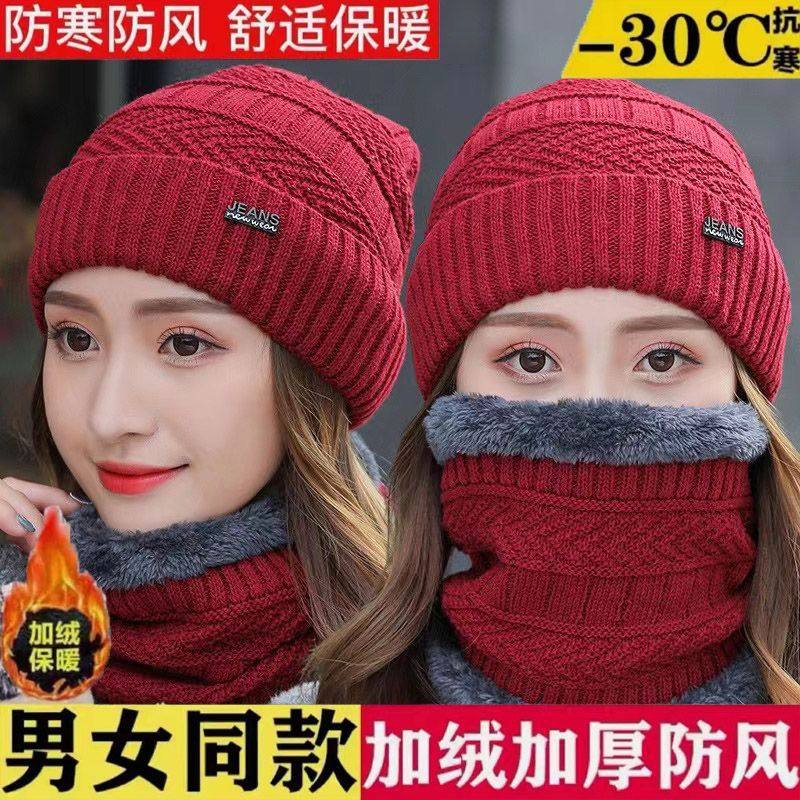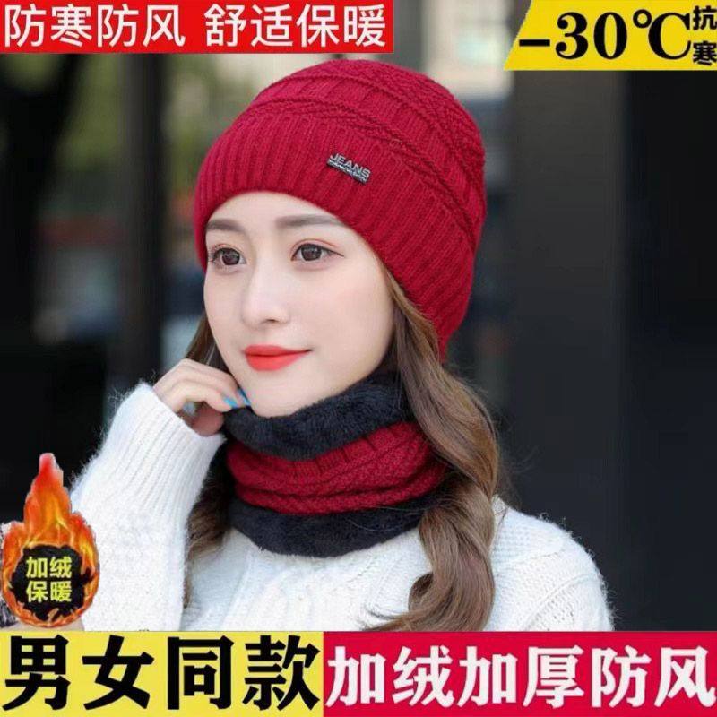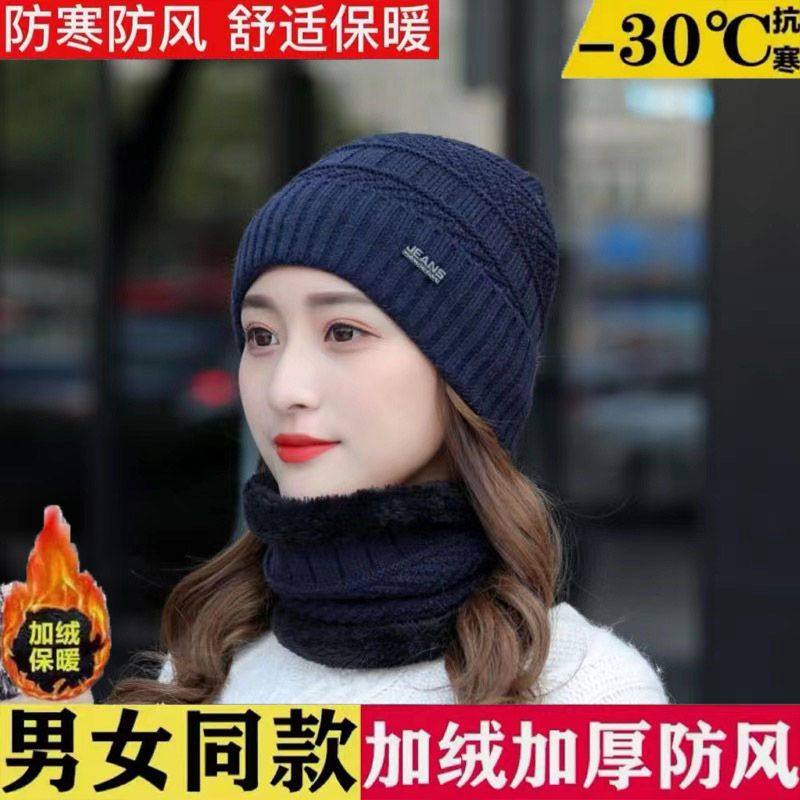 恬恬黛 帽子女冬季韩版潮百搭毛线帽 女士保暖护耳围脖两件套
