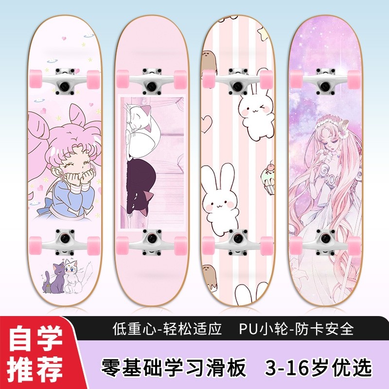 双翘滑板儿童女孩公主款滑板可爱初学者少女新手入门四轮滑板车