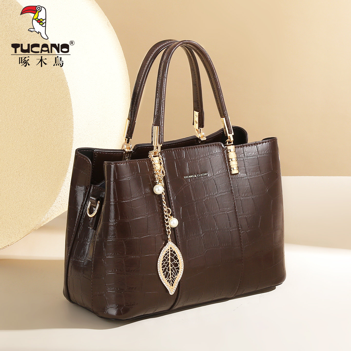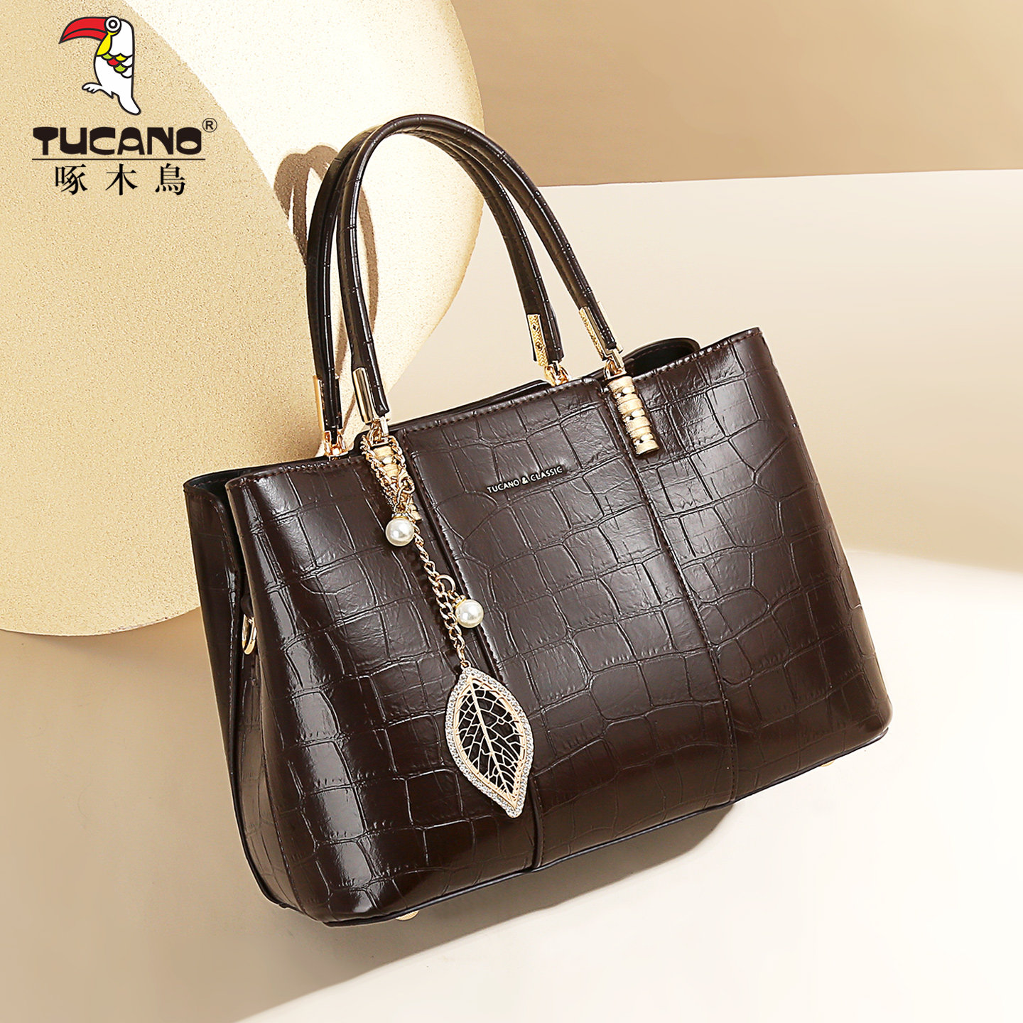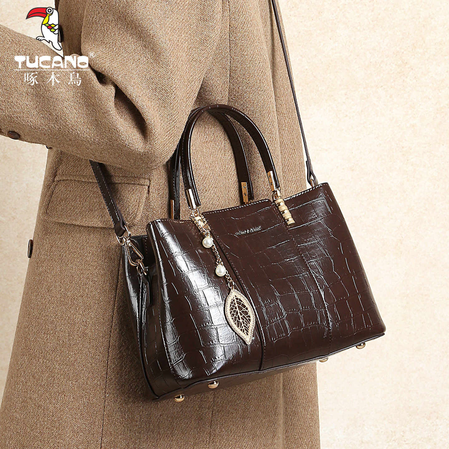 啄木鸟真皮女包2025新款冬季高级感大容量送妈妈手提包单肩斜挎包