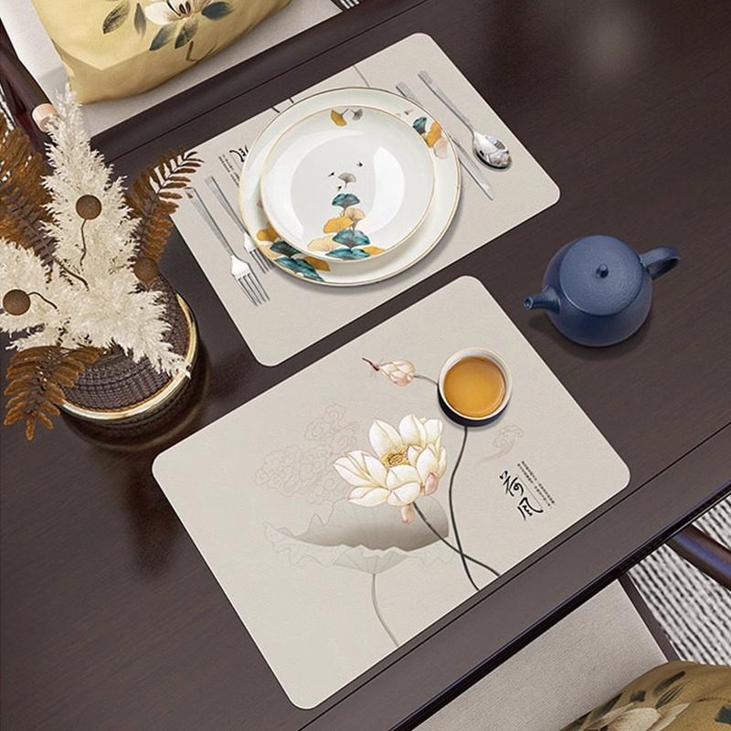 新中式餐垫皮革防水防油防滑餐垫隔热防烫防油西餐垫茶具餐具垫子