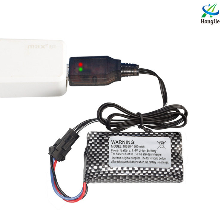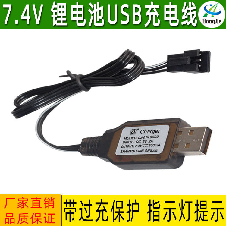工厂7.4V-3P插头充电线扭变车锂电池USB充电器带保护可转灯SM接口
