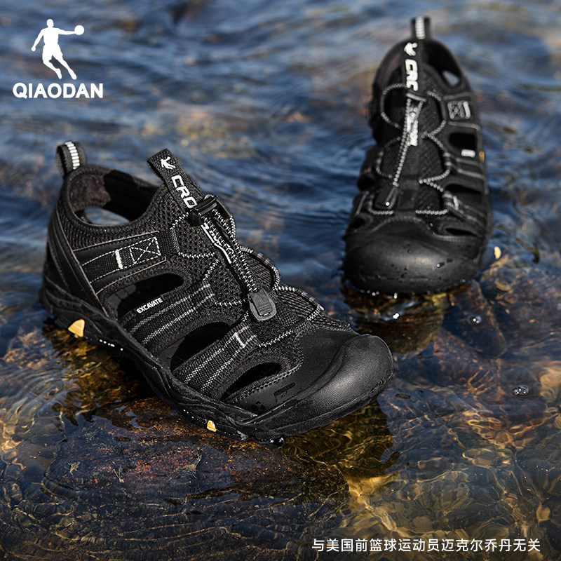 乔丹踏浪溯溪鞋男2025夏季新款黑色百搭凉鞋户外镂空透气运动鞋男
