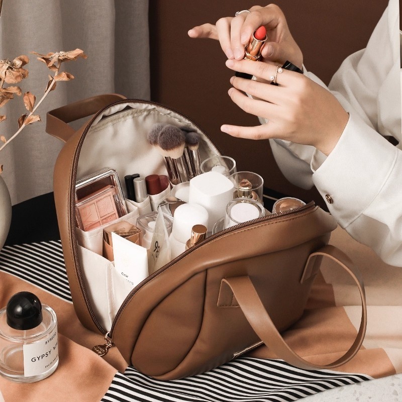 2025新款美贝壳手提化妆包大容量女便携式外出化妆品分区收纳好物