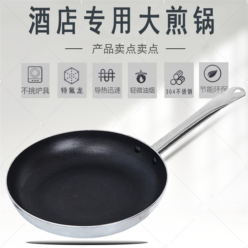 酒店不粘锅牛排煎蛋平底锅煎锅烙饼锅不锈钢大商用20-40用电磁炉