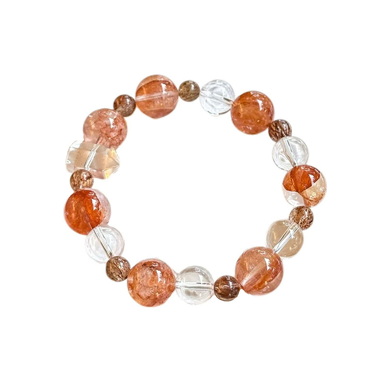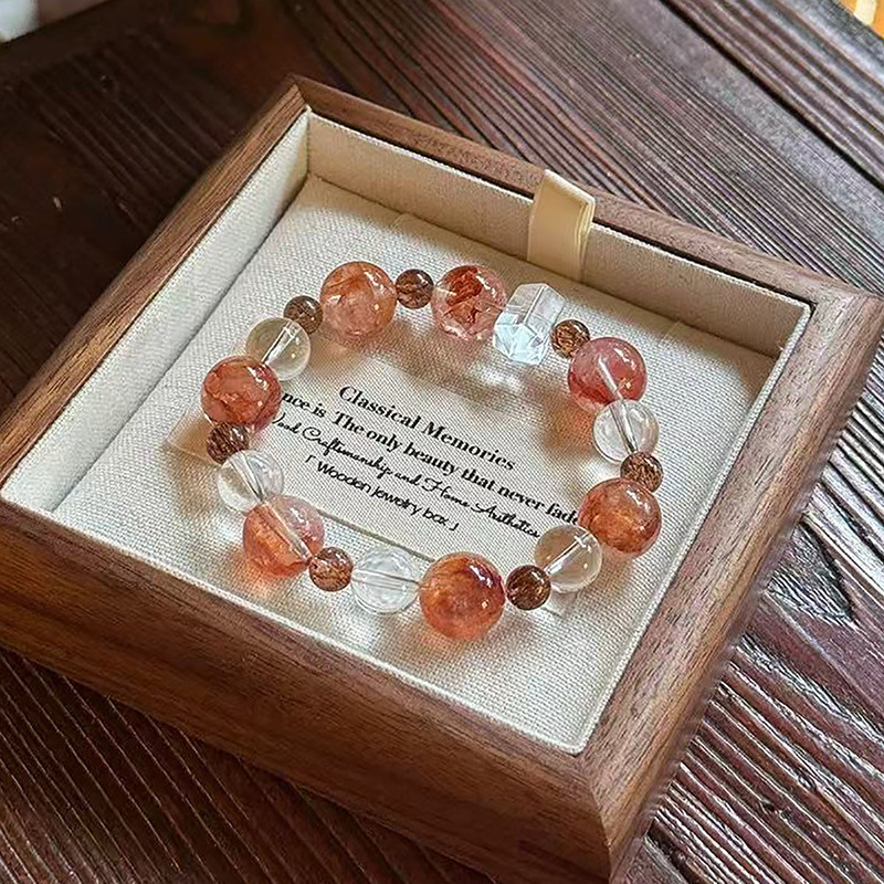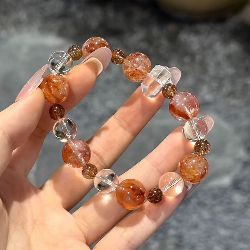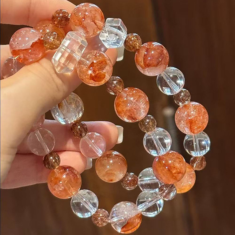 天然水晶红胶花手串女白水晶超七转运珠锦鲤手链本命年鸿运当头