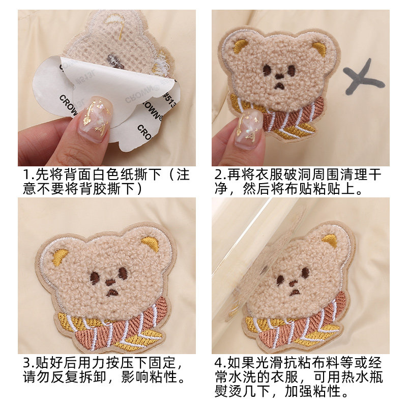 毛绒熊衣服补丁贴围巾刺绣贴diy自粘可爱包包破洞修复装饰布贴花