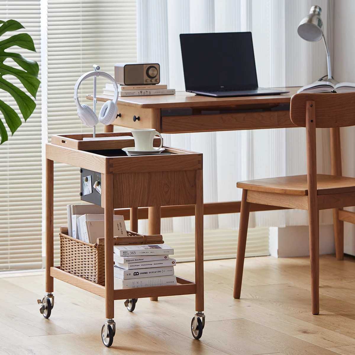 实木边几北欧可移动小推车樱桃木小户型日式茶几沙发边桌