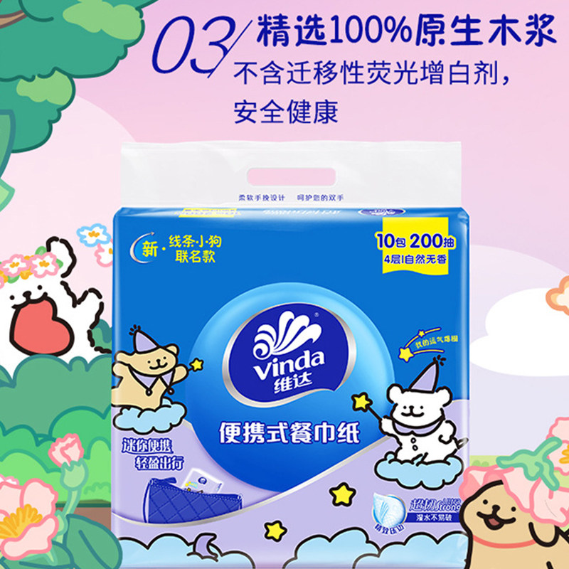 维达手帕纸线条小狗联名IP纸巾抽纸随身装4层10包便携式小包餐巾