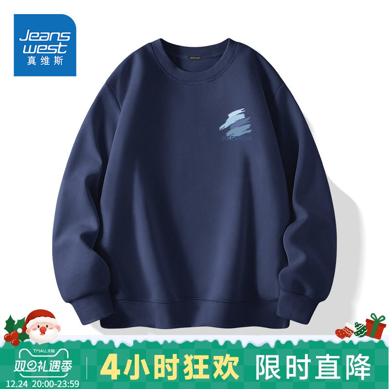 HG真维斯男士卫衣秋季oversize阔版大码上衣男美式重磅圆领外套潮